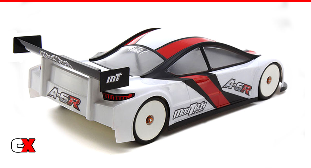 The A-6R is the latest and greatest 190mm Touring Car body from Mon-Tech Racing. It features a mildly-sloped front end, a now-required-for-best-performance cab-forward roof design and a long rear deck topped with a large wing. It is available in two versions – a standard weight that rings in at approximately 85g and a lightweight version – around 60g.