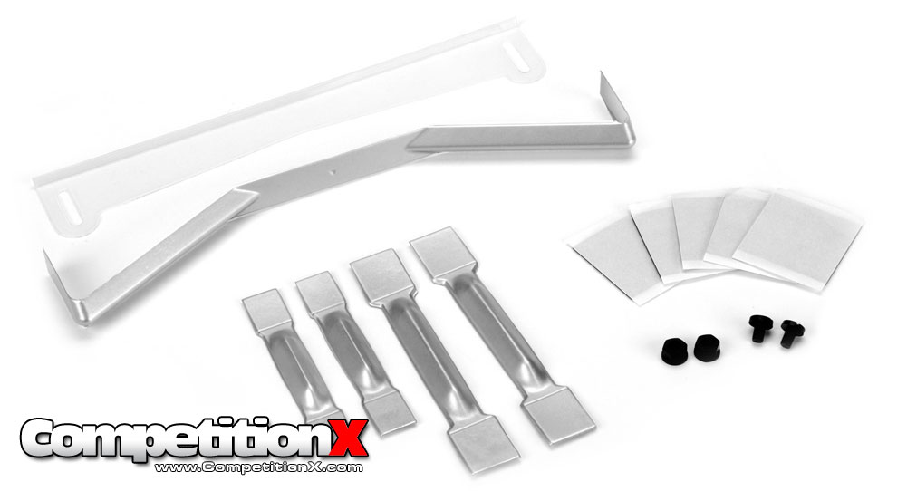 This kit includes a large main stiffener that is pre-formed and pre-cut for behind the rear wheels, ready to install. Two small and two medium stiffeners are included to support the sides of the body. Double sided tape is also included to attach all the pieces.