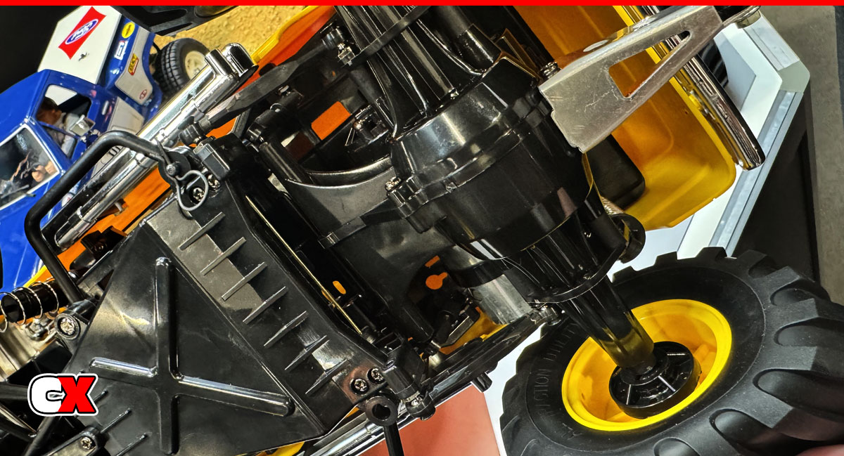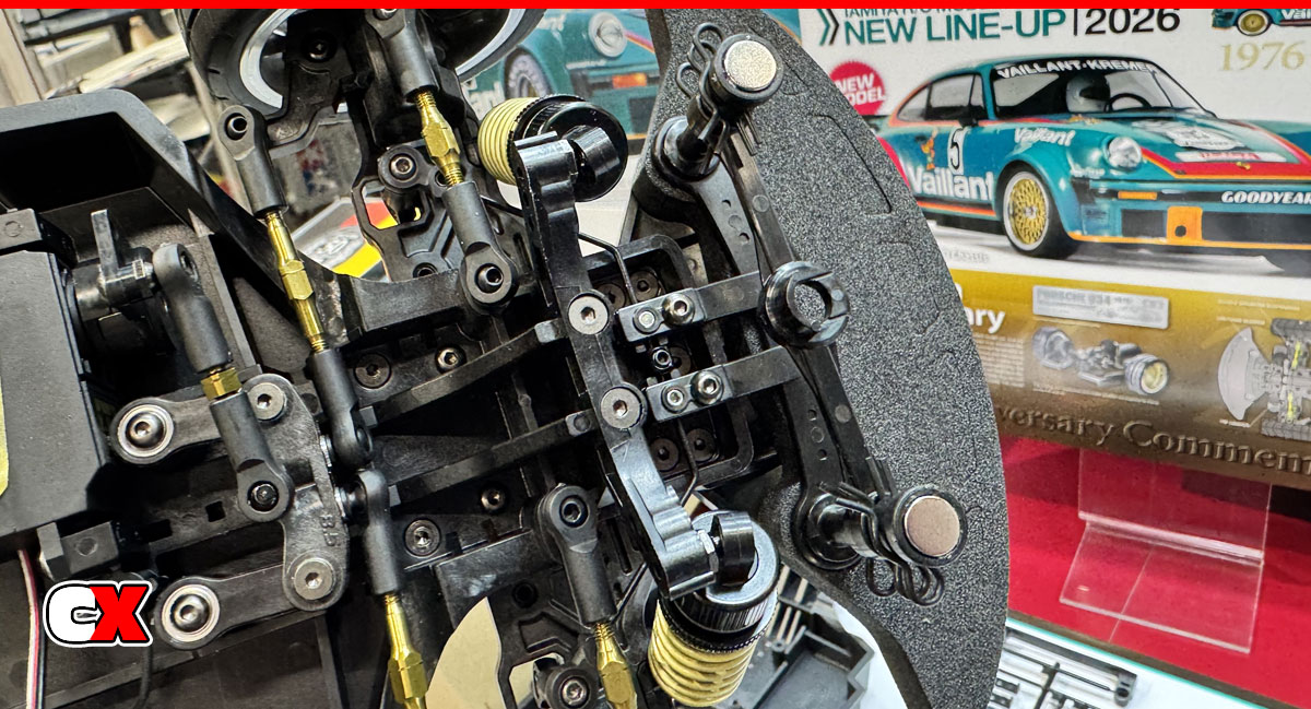 Finally, for the 50th Anniversary, Tamiya is bringing back the Porsche 934 (1976). This kit sits on a WILD chassis – white the front seems somewhat normal, the rear motor setup uses a unique over-the-gearbox shaft design – it’s crazy looking but also, well, VERY Tamiya. One additional note on this car – a magnetic body mounting system. Is Tamiya finally doing away with body holes????
