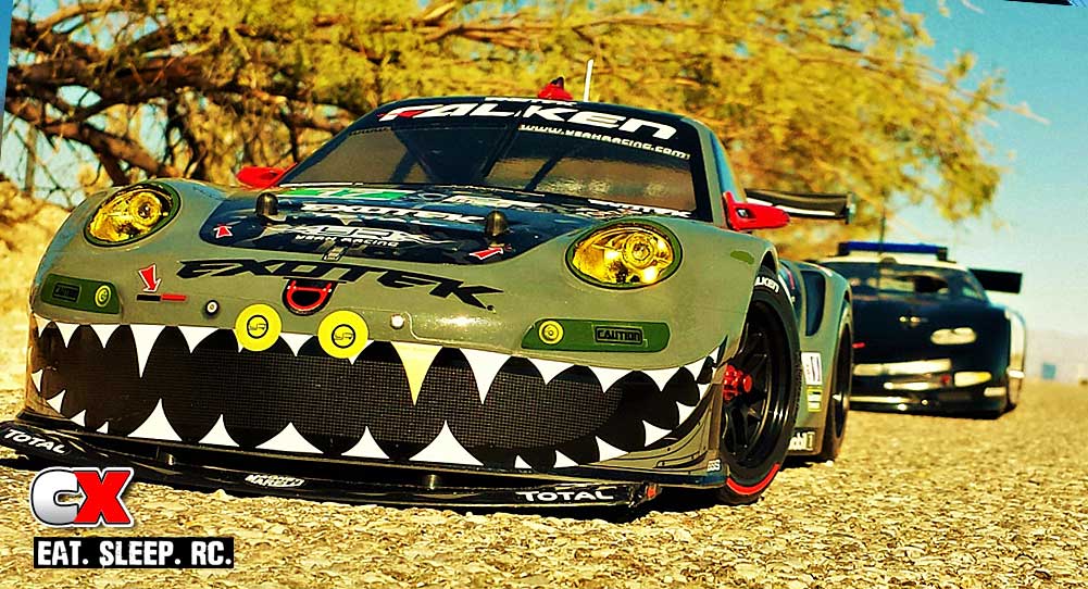 The speeding citation issued to me by Nevada Highway Patrolman Officer O.V. Hunter Jr. was for driving 88mph in a 25mph zone. After admitting guilt and signing the citation officer Hunter replied, “These Race-Replica Porsches are cursed. My father was the last man to see James Dean alive driving a 1955 Porsche 550 Spyder before the horrible crash that took his life”. I thanked the officer for not impounding my car and after some friendly words, Officer O.V. Hunter Jr. left the scene in a vintage HPI Super Nitro RS4 – a special police issued Wolfpack Radicals C5-R Interceptor. As soon as the billowing nitro smoke cleared, I decided one more speed run was in order. I checked my steering and slowly drove down the highway, almost out of visual site, before slowly turning 180 degrees. I made one final head check to my left before I engaged my index finger to quarter throttle and continued to pull as the camo Porsche began to gain speed. I was at full trigger lock by the time the car came rushing by and, for some reason, I couldn’t unlock my finger from the trigger as the Porsche continued down the highway past my line of site. By the time I finally released the trigger, the Shark had disappeared completely from my view down the long desolate stretch of highway and into the shaded horizon.